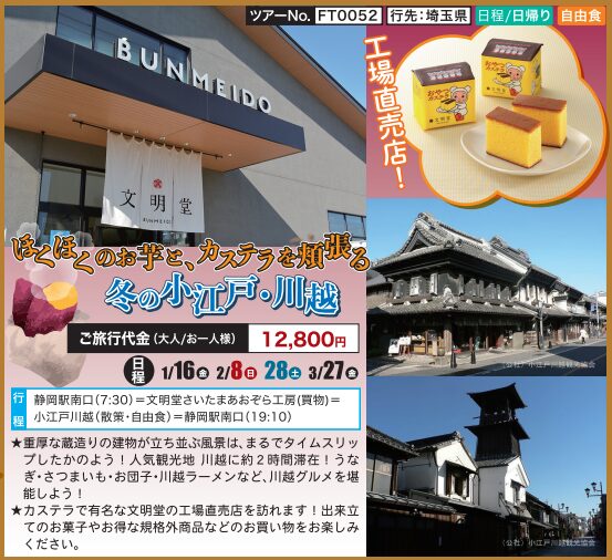 ツアー名【FT0052】ほくほくのお芋と、カステラを頬張る 冬の小江戸・川越