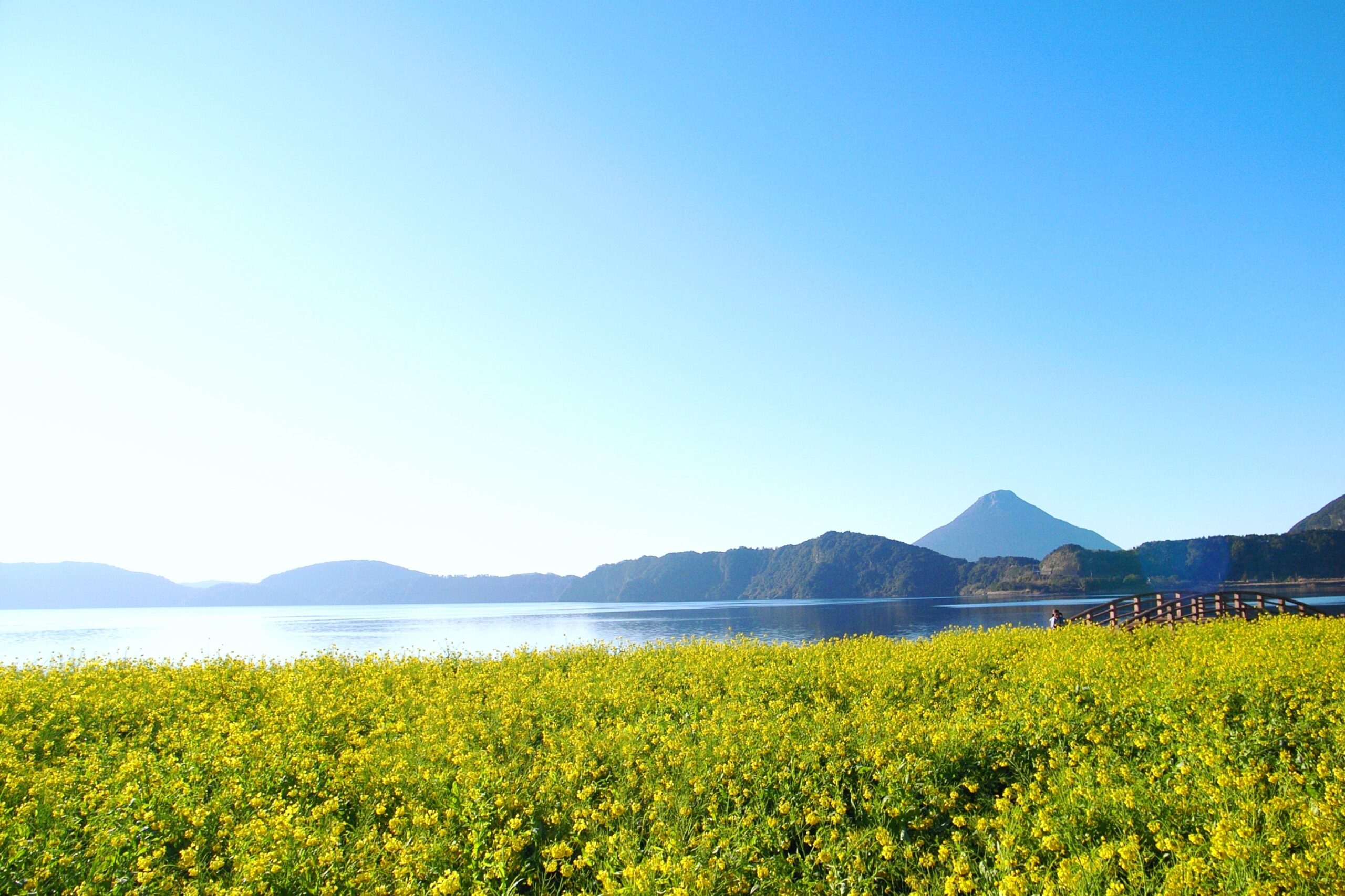 2月発は例年、九州最大のカルデラ湖「池田湖」周辺の菜の花畑が見頃!一足早い春の訪れを感じさせる、黄色いじゅうたんの絶景をお楽しみください。