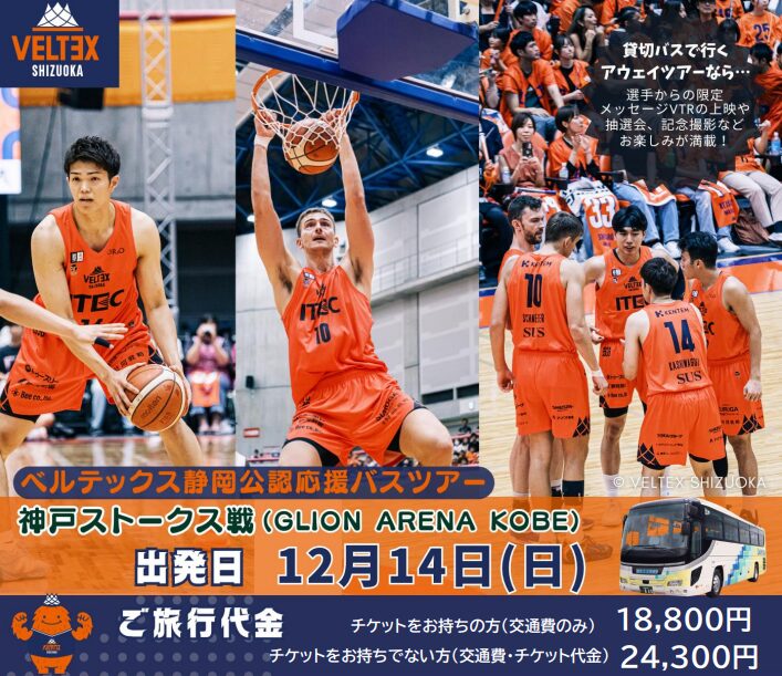 ツアー名12月【VT0002】ベルテックス静岡公認応援バスツアー vs神戸ストークス戦